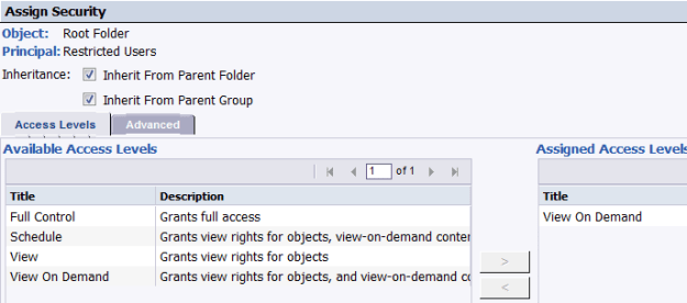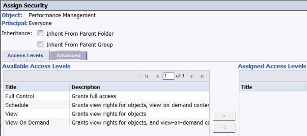 Select “Performance Management” in “Applications”, modify “User Security”, select “Everyone”, remove View right, remove “Inherit From Parent Folder”, remove “Inherit From Parent Group”. Click “OK”, “Close”