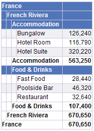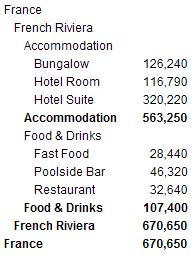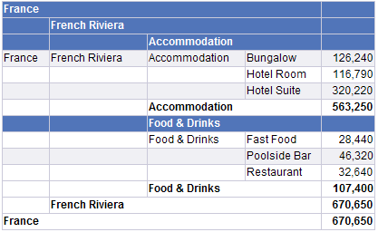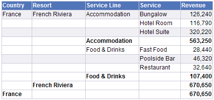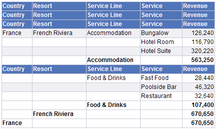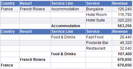 Apply breaks on Country, Resort and Service Line. Add totals.