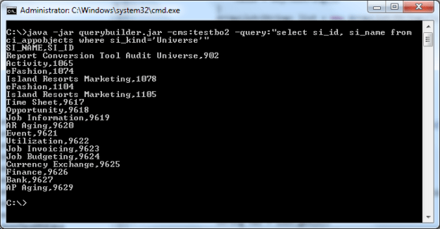 The command line tool imports a universe from CMS, refreshes or purges lists of values (LoVs) and exports the universe back to CMS.