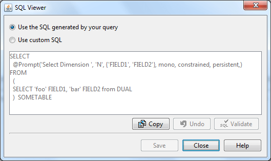 import java.util.List; import java.util.Locale; import com.businessobjects.adv_ivcdzview.Utils; import com.businessobjects.rebean.wi.model.engine.IDocumentInstance; import com.businessobjects.rebean.wi.services.IDocumentInstanceManagementService; import com.businessobjects.sdk.core.Core; import com.businessobjects.sdk.core.context.IContext; import com.crystaldecisions.sdk.exception.SDKException; import com.crystaldecisions.sdk.framework.CrystalEnterprise; import com.crystaldecisions.sdk.framework.IEnterpriseSession; import com.crystaldecisions.sdk.framework.ISessionMgr; import com.crystaldecisions.sdk.occa.infostore.IInfoObject; import com.crystaldecisions.sdk.occa.infostore.IInfoObjects; import com.crystaldecisions.sdk.occa.infostore.IInfoStore; import com.sap.sl.dictionary.DictionaryExpression; import com.sap.sl.dictionary.Variable; import com.sap.webi.client.toolkit.Deployment; import com.sap.webi.client.toolkit.LoginKey; import com.sap.webi.client.toolkit.SessionContext; import com.sap.webi.client.toolkit.reporting.ReportDictionaryHelper; public class Program2 { public static void main(String[] args) throws Exception { IEnterpriseSession enterpriseSession = null; try { System.out.println("Connecting..."); ISessionMgr sessionMgr = CrystalEnterprise.getSessionMgr(); enterpriseSession = sessionMgr.logon( "Administrator", "", "localhost", "secEnterprise"); // Do some magic String serializedSession = enterpriseSession.getSerializedSession(); SessionContext sessionContext = Utils.getSessionContextManager() .matchSessionContext(Deployment.DHTML, serializedSession, true); Locale localLocale = Locale.getDefault(); sessionContext.getLoginInfo().set(LoginKey.LOCALE, localLocale); sessionContext.logonWithSerializedSession(); IContext context = sessionContext.getCoreContext(); IDocumentInstanceManagementService documentInstanceManagementService = Core.getService(IDocumentInstanceManagementService.class); // Get the list of webi documents IInfoStore infoStore = (IInfoStore) enterpriseSession.getService("InfoStore"); String query = "select SI_NAME, SI_ID from CI_INFOOBJECTS " + "where SI_KIND = 'Webi' and SI_INSTANCE=0"; IInfoObjects infoObjects = (IInfoObjects) infoStore.query(query); for (Object object : infoObjects) { IInfoObject infoObject = (IInfoObject) object; if (getInfoObjectPathAndTitle(infoObject).startsWith("/")) { System.out.println("REPORT: " + infoObject.getTitle()); IDocumentInstance doc = documentInstanceManagementService .openDocument(context, infoObject.getID()); List list = ReportDictionaryHelper .getDictionaryObjectsFlatList(context, doc); if (list.size() > 0) { System.out.println("OBJECTS:"); for (DictionaryExpression expr:list) { System.out.println(expr.getName()); } } List vars = ReportDictionaryHelper.getDocumentVariables(context,doc); if (vars.size() > 0) { System.out.println("VARIABLES:"); for (Variable var:vars) { System.out.println(var.getName()); } } documentInstanceManagementService.closeDocument(context, doc); System.out.println(); } } } catch (SDKException ex) { ex.printStackTrace(); } finally { if (enterpriseSession != null) enterpriseSession.logoff(); } System.out.println("Finished!"); } public static String getInfoObjectPath(IInfoObject infoObject) throws SDKException { String path = ""; while (infoObject.getParentID() != 0) { infoObject = infoObject.getParent(); path = "/" + infoObject.getTitle() + path; } return path; } public static String getInfoObjectPathAndTitle(IInfoObject infoObject) throws SDKException { return getInfoObjectPath(infoObject) + "/" + infoObject.getTitle(); } }
